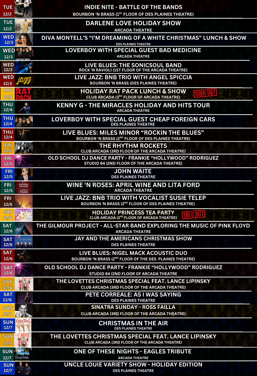 Our intimate Speakeasy, located on the 3rd floor of the Theatre, offers Jazz, Blues, Rockabilly, Motown, Disco, Classic Rock and More!