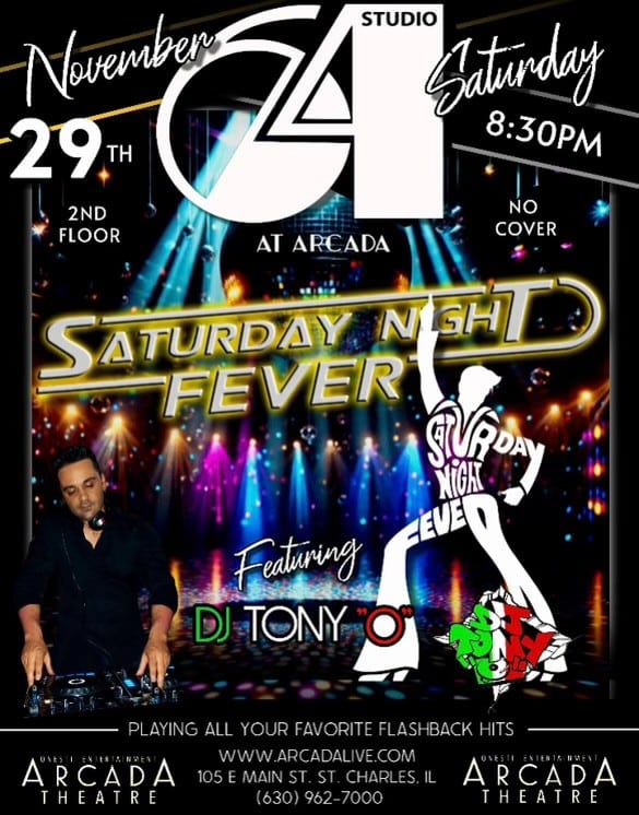 Arcada Theatre 105 E Main St, St. Charles, IL, United StatesStudio 64, located on the 2nd Floor of the Arcada Theatre Complex, is bringing New York’s Studio 54 vibe to St. Charles. Join us in a lounge style setting complete...